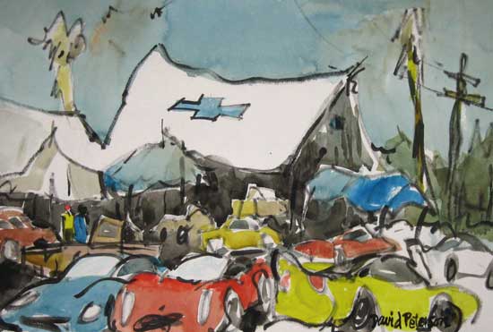 No. 774, "Fulton Avenue Corvette Barn", $500.00 January, 2007, Watercolor, ink, 22" x 15".