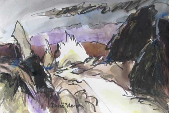 No. 861, "Lost Hills", Watercolor, 22" x 15". May 4, 2007,. For sale, $400.00, framed. This painting is an interpretation of the Alabama Hills.