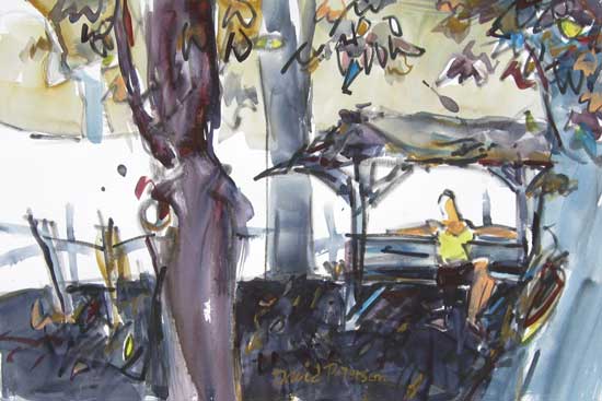 No. 919, "Botanical Gardens V", July, 2007 at the Jensen Botanical Gardens in Carmichael. Watercolor and ink marker, 22" x 15". Available for sale framed, $400.00.
